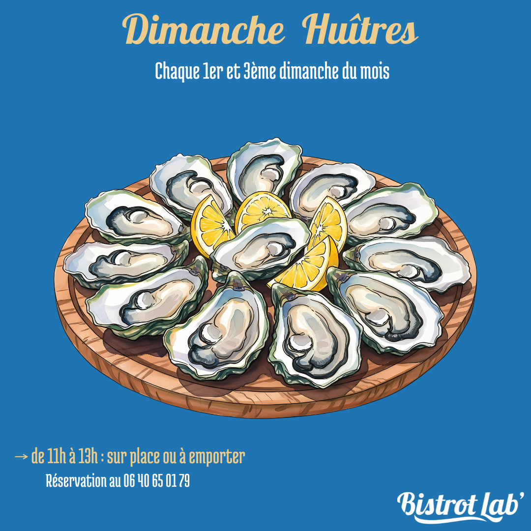 > Dimanche Huîtres, le dimanche 7 décembre de 11h à 13h. Avez vous envie de partager une dégustation d'huîtres le midi ? Un rendez vous chaque 1er et 3e dimanche du mois.