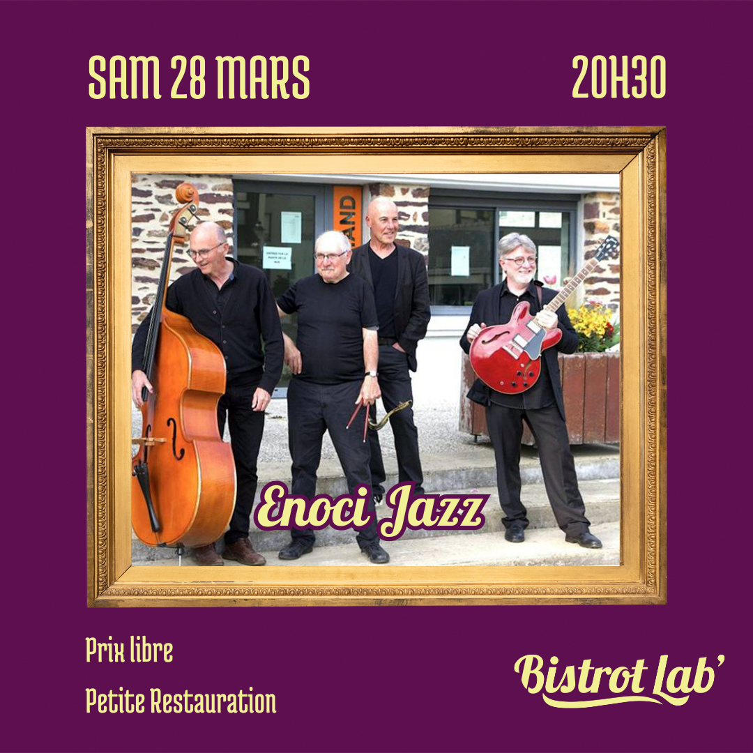 Enoci Jazz & songs associe trio rythmique et section de cuivres pour revisiter de grands standards jazz et de chansons françaises jazzy, de Gainsbourg à Nougaro notamment... Prix libre - Restauration Panino